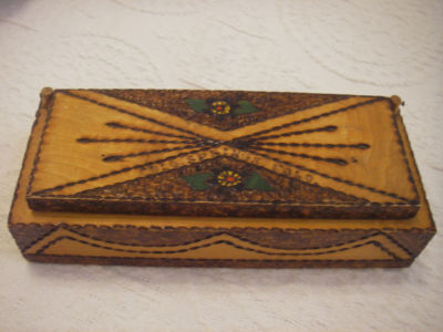 Title (ebay affiliate link): Vintage TRAMP FOLK ART WOOD BOX green painted COLORADO SPRINGS burnt design old