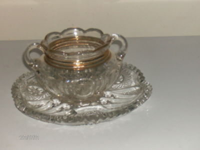 VINTAGE DEPRESSION GLASS SUGAR BOWL & PLATE