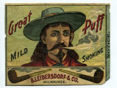 Title (ebay affiliate link): TOBACCO LABEL GREAT PUFF - MAN OF OLD WEST - B. LEIDERSDORF & CO MILWAUKEE