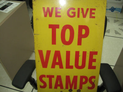 TOP VALVE STAMPS FLANGE METAL SIGN, 2 SIDES LARGE FLANGE