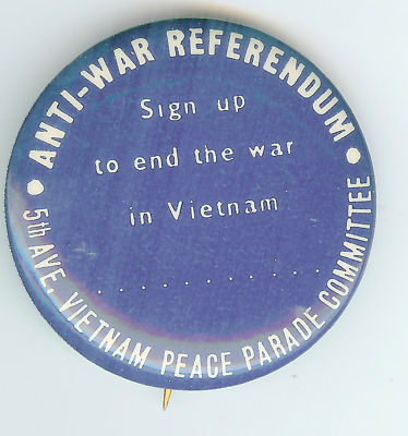 Title (ebay affiliate link): 5th Ave. Vietnam Peace Parade Committee ANTI-WAR REFERENDUM Sign Up Pin!