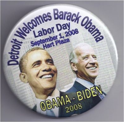 OBAMA LABOR DAY DETROIT 9/1/08 PINBACK BUTTON PIN