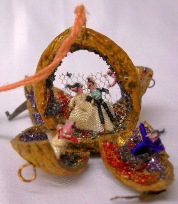 Title (ebay affiliate link): Rare Unusual Victorian Handmade Christmas Ornament Estate Nut w Wedding inside