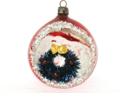 Title (ebay affiliate link): Vtg 3D Diorama Mercury Glass Christmas Ornament~Bottlebrush Wreath Bow Japan Old