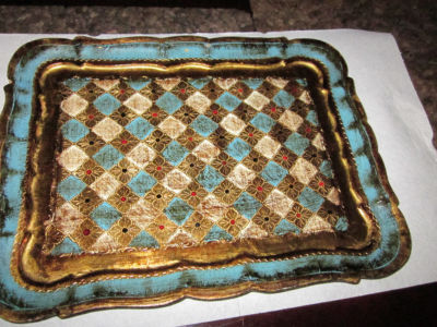 Title (ebay affiliate link): VINTAGE /OLD TOLEWARE ITALIAN FLORENTINE STYLE /GOLD/WHITE/TURQ TRAY 12 X 9 3/4"
