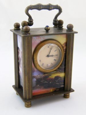 CLASSICAL BRASS & PICTORIAL CARRIAGE CLOCK - WORKING!