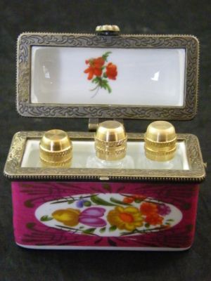 HAND PAINTED PORCELAIN & GLASS 3 BOTTLE PERFUME SET
