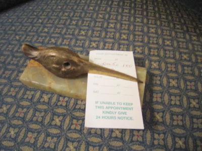 Title (ebay affiliate link): Antique brass birds head letter holder, bill spring open,Marble base 5 1/2x2"
