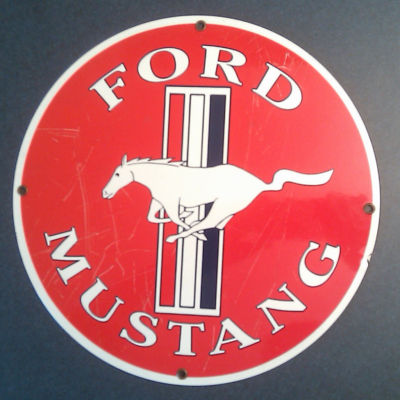 Title (ebay affiliate link): Vintage Ford Mustang Genuine Porcelain Sign