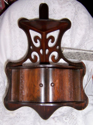 Title (ebay affiliate link): Antique Vintage Wooden Corner Shelf w/ Doors 24" Tall Dark Wood Walnut? Cherry?