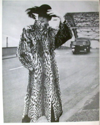 Sexy Model in Leopard Fur Coat 1981 2 Sided Fashion Ad