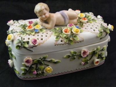 SITZENDORF APPLIED PORCELAIN CHERUB TRINKET BOX