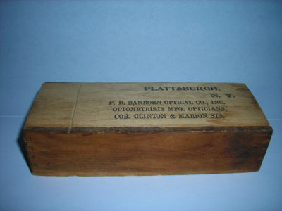 Old SANBORN OPTICAL Plattsburgh, NY Wood Eyeglass Box
