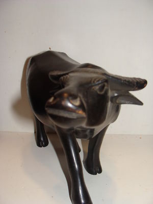 Spectacular Hand Carved Dense Wood Hugh Water Buffalo Figurine Dark Stain LOOK