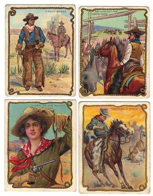 Hassan Cigarette Card Group Adv Trade Card, 4 Early Cowboy Cards