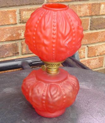 VINTAGE MINIATURE OIL LAMP "GONE WITH THE WIND " RED SATIN