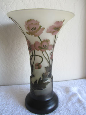 Title (ebay affiliate link): Elegant Cameo Glass Vase with Pink Flowers