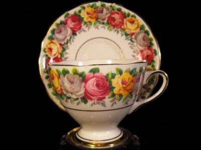 A GLADSTONE FINE BONE CHINA TEACUP & SAUCER "Rosemary"