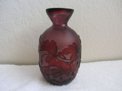 Dark Purple Cameo Glass Vase with Flowers