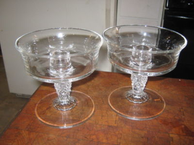 Clear Glass Candlesticks w/ Cup Guard Diamond design on Stem
