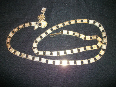 Title (ebay affiliate link): vintage adjustable goldtone chain link belt with attached key heart lock charms