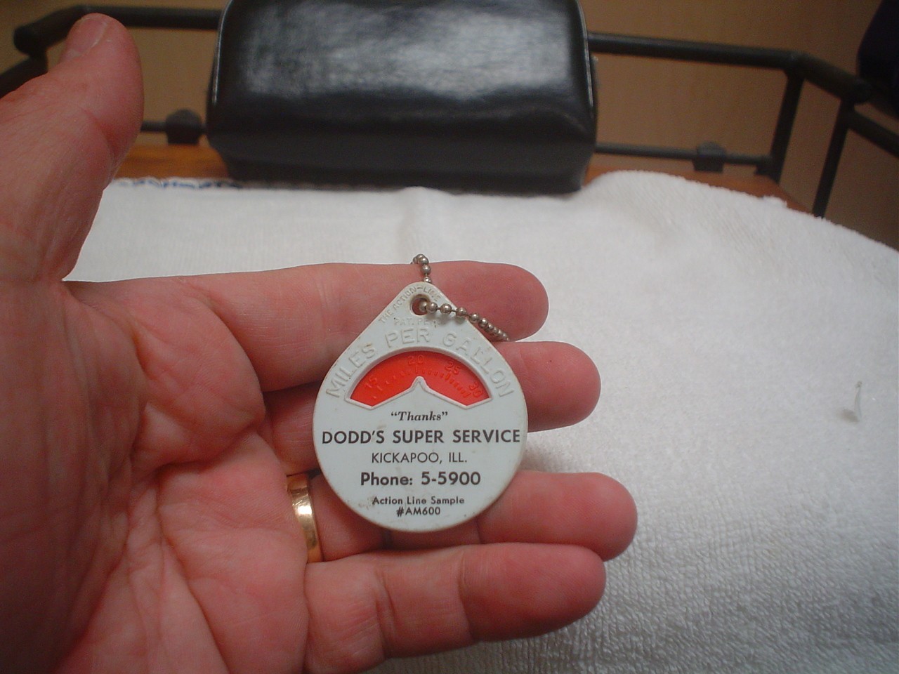 Vintage ** Miles Per Gallon Calculator ** Keychain From Dodd's Kickapoo ILL