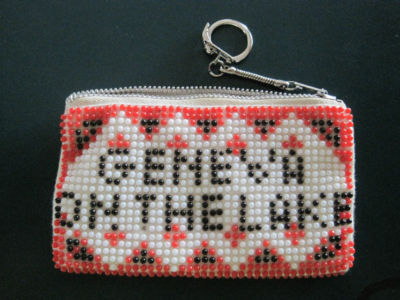 vintage BEADED CHANGE PURSE keychain GENEVA on the LAKE OHIO souvenir