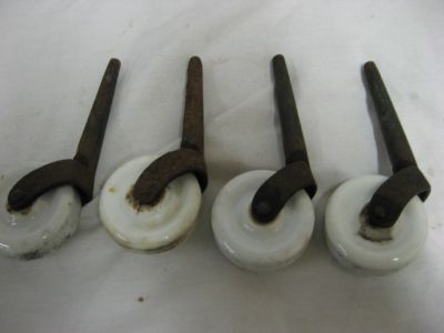 LOT of 4 ANTIQUE FURNITURE CASTER PORCELAIN WHEELS