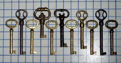 Title (ebay affiliate link): Antique Vintage old brass skeleton key lot cabinet furniture barrel lock jewelry