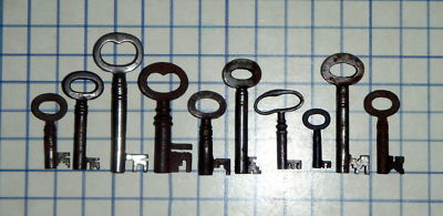 Title (ebay affiliate link): Antique Vintage old Fancy intricate bit skeleton key lot furniture cabinet lock