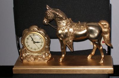Title (ebay affiliate link): Stunning ANTIQUE UNITED COWBOY HORSE & CLOCK Working Self Starting Mantel Clock