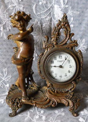 Title (ebay affiliate link): ANTIQUE BRONZE SPELTER NEW HAVEN ANGEL CHERUB FIGURE PORCELAIN FACE MANTEL CLOCK