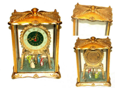 Title (ebay affiliate link): Vintage Gold Brass & Glass Electric Clock Shelf Mantel Decorative Figural Clock