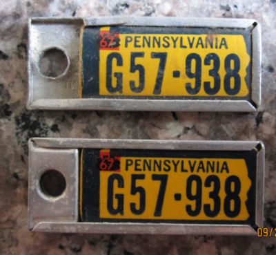 2 Vintage 1967 Pennsylvania Pair Disabled Veterans License Plate Keychain - DAV