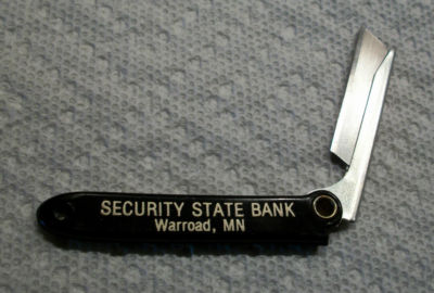 Title (ebay affiliate link): Vintage Security State Bank Warroad, Minnesota Keychain with Straight Edge Blade