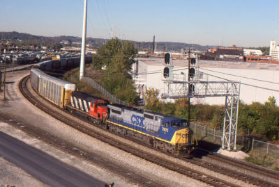 Original slide-CSX C40-8W #7875 & Train/ Cincinnati,OH. October 1998-Very Nice!!