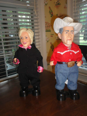 Title (ebay affiliate link): GEMMY GEORGE W BUSH COUNTRY SUPERSTAR & HILLARY CLINTON SINGS DANCING DOLL SET