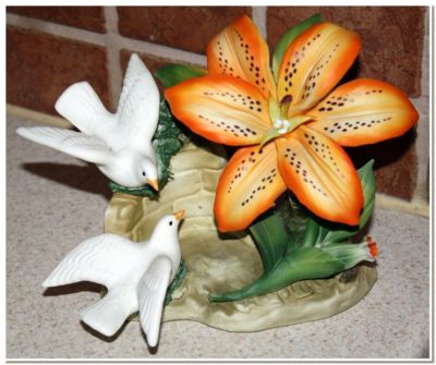 Title (ebay affiliate link): 2 FINE CAPODIMONTE PORCELAIN ITALIAN SCULPTURES WHITE DOVES FLOWERS PRETTY NR!!