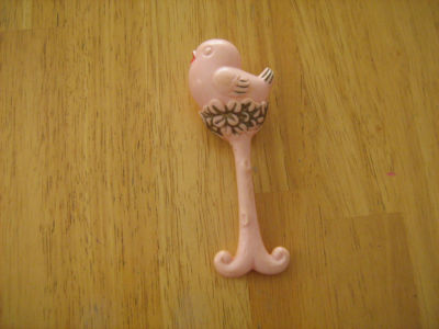 Title (ebay affiliate link): Pink Vintage Bird Toy Baby Rattle Circa 1974 Made in Hong Kong