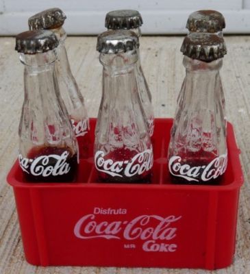 Title (ebay affiliate link): Old Coca Cola Miniature Set of 6 Glass Bottles Disfruta Coca-Cola Plastic Case