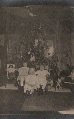 Title (ebay affiliate link): Real Photo Xmas PC. Children, Tree, Lots of Dolls, Large Wax Angel hanging