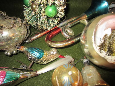 Title (ebay affiliate link): 8 piece Vintage Christmas lot , Mercury glass , bottle brush , birds , horn