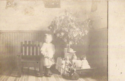 Title (ebay affiliate link): Real Photo Xmas PC. Girl, Wooden Wagon, Many Lebkuchen Cookies on Tree