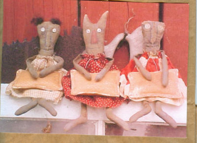 PRIMITIVE DOLL PATTERN - TWO DOLLS & ONE CAT - PIN CUSHION DOLLS