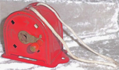 VINTAGE METAL CLOTHESLINE REEL: ORIGINAL RED PAINT