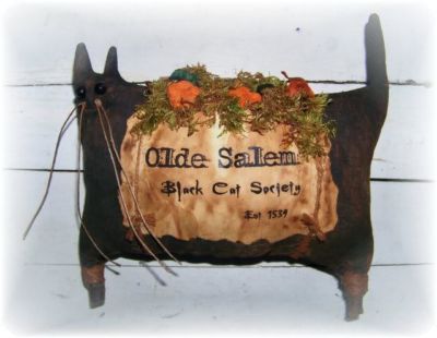 Primitive Grungy Halloween Salem Black Cat Society follkart doll cupboard tuck