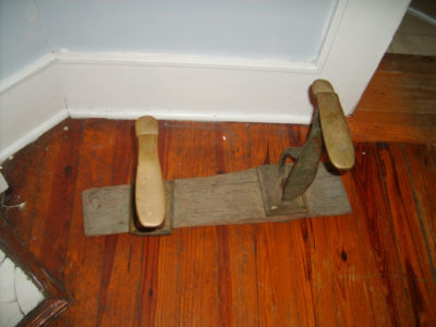 PAIR OF BRASS ANTIQUE SHOESHINE STAND FOOT REST ART DECO with original board