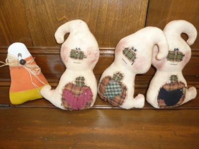 Title (ebay affiliate link): Primitive Folk Art Halloween Ghosts and Candy Corn Dolls Decorations