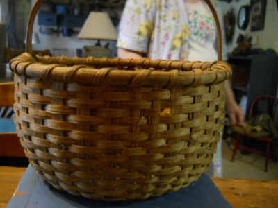PRIMITIVE ANTIQUE ROUND BASKET WITH HANDLE