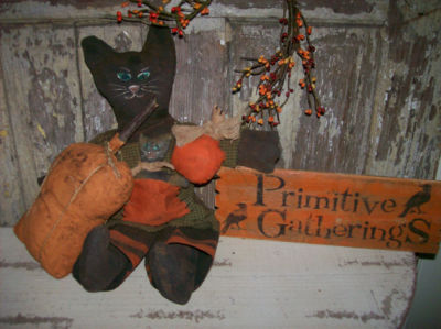 Title (ebay affiliate link): PriMiTiVE FaLL~HaLLoweEn~CAt~KiTty~2 PumPKinS~SiGn~GaTheriNGs~GruNgy & UgLy~